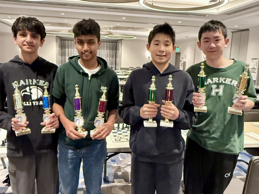 Over the Presidents Day weekend, ninth graders (pictured, left to right) Shivam Sharma, Reyansh Gupta, Nathan Yan and Dylan Tang placed third in the Amateur Team West National Championship chess tournament, held at the Sonesta Silicon Valley Event Center. The event consisted of formidable teams from across the west coast.