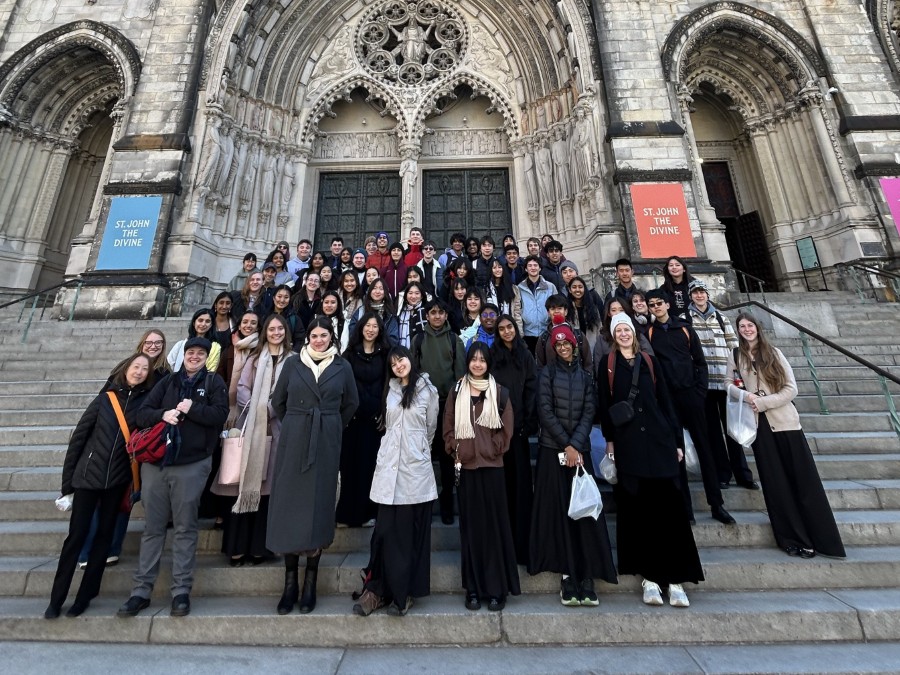 Students from the Harker contingent of the International Thespian Society were also on the trip, collaborating with choir students for a performance combining music and poetry at St. John the Divine Cathedral, as well as attending workshops with Broadway performers and technicians. One such workshop was conducted by Christopher Anaya-Gorman, whose credits include “Hadestown” and “Jagged Little Pill.” They also visited NBC Studios for a behind-the-scenes look at the production of shows such as “Saturday Night Live,” “The Tonight Show with Jimmy Fallon” and “The Kelly Clarkson Show,” and participated in a simulation of the recording a late-night talk show.